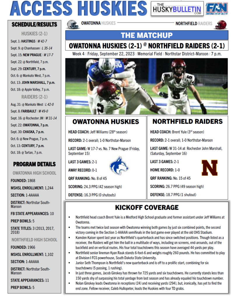 Here is the Week 4 Preview as the Huskies travel to Northfield.